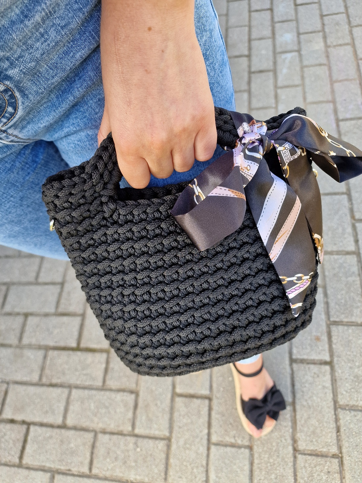 Nerta nedidelė juodos spalvos rankinė su skarele