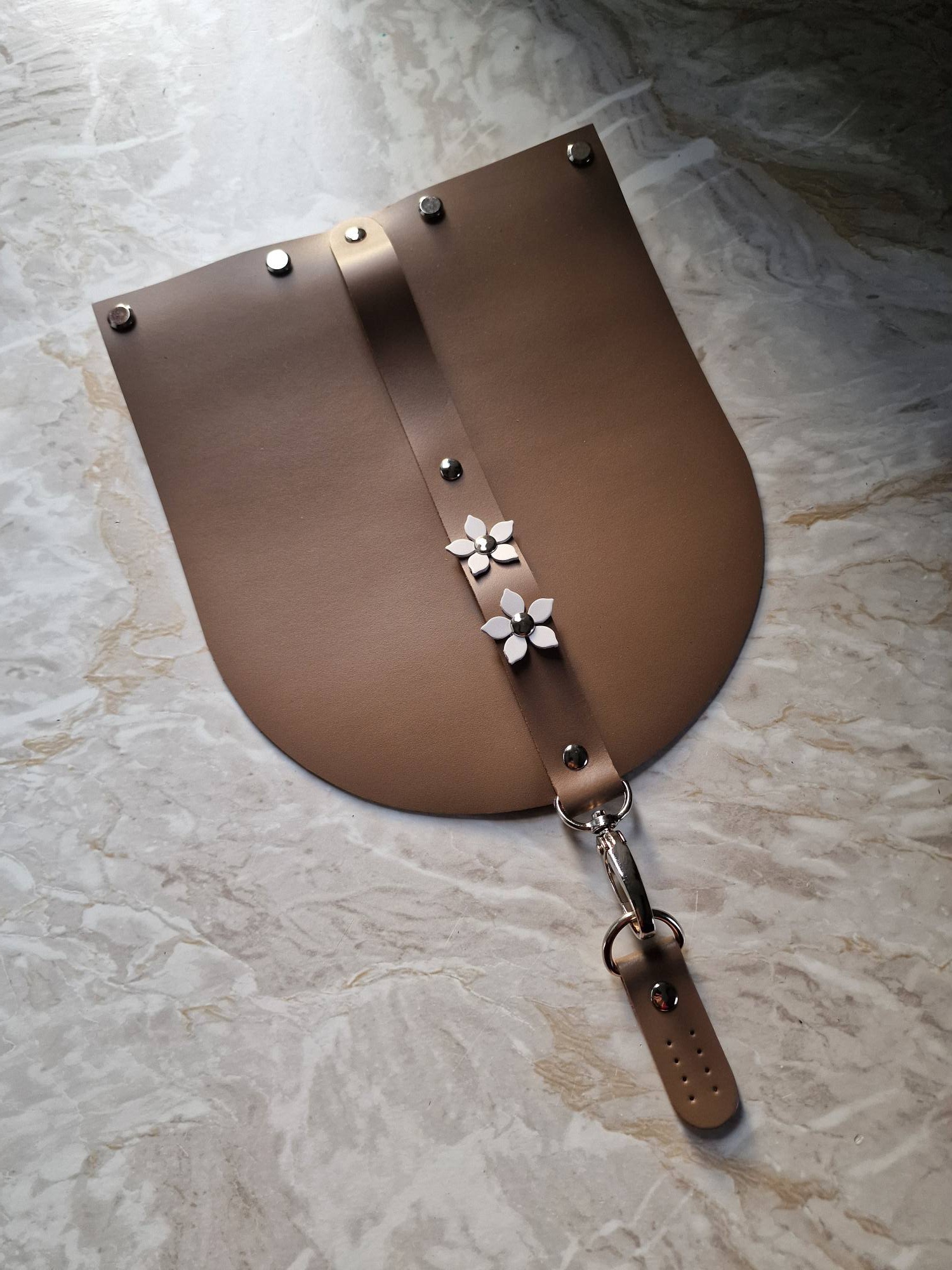 Odinis viršelis su gėlėmis ir karabino užraktu(kakavinis, šiltas rusvas atspalvis)