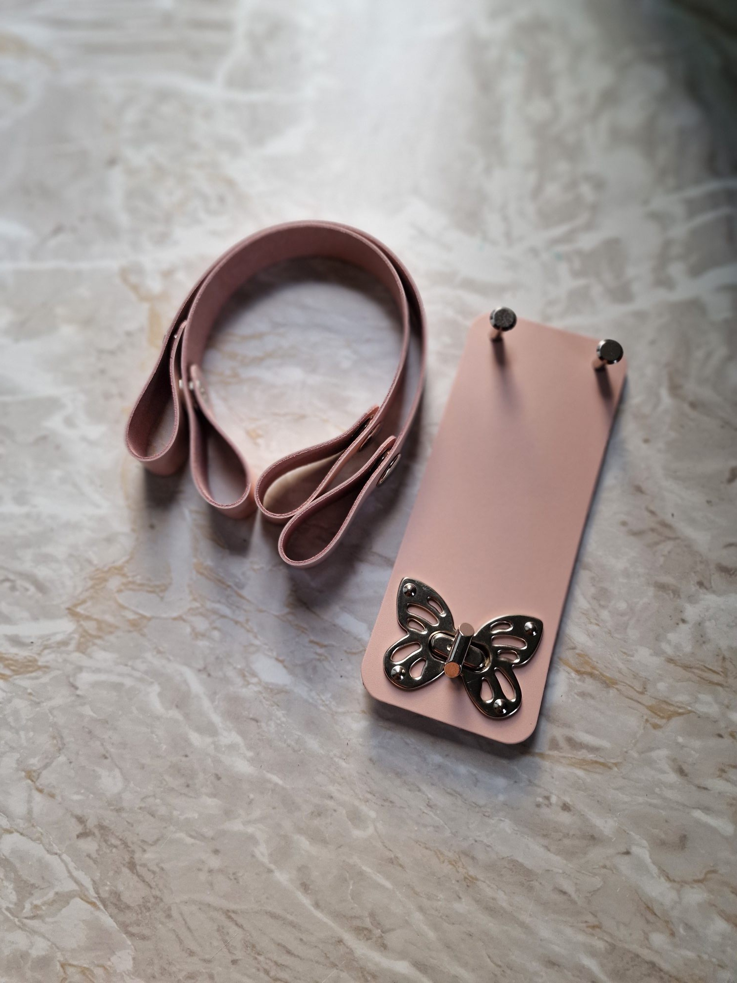 Odinis viršelis su drugelio užsegimu(šviesiai rožinis)