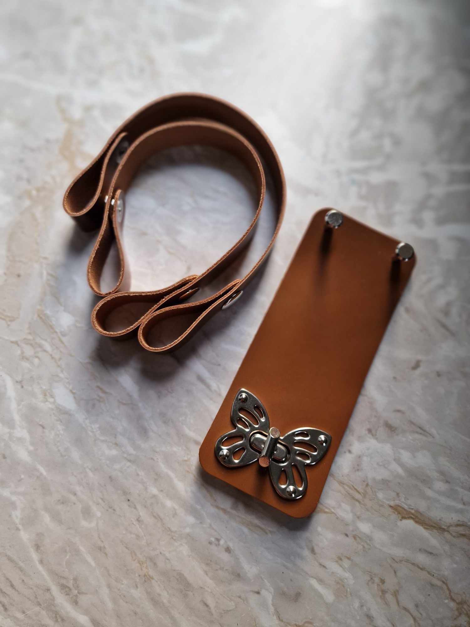 Odinis viršelis su drugelio užsegimu(karamelinis)