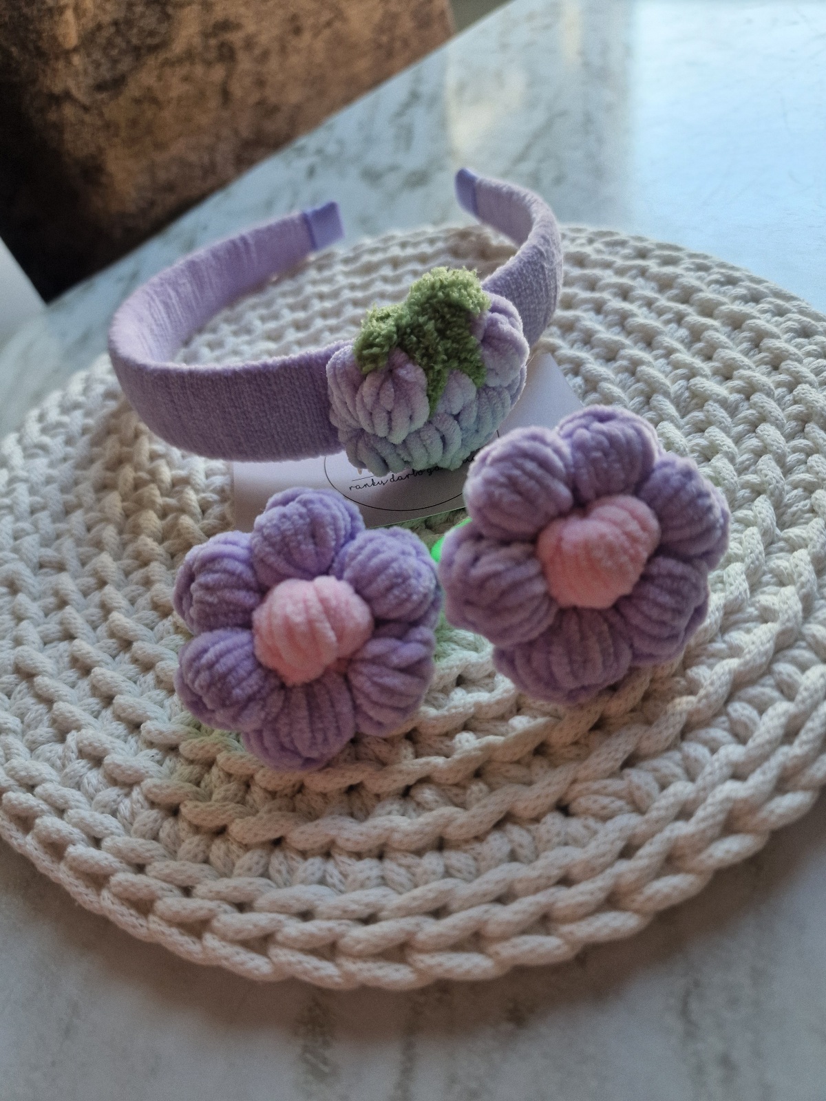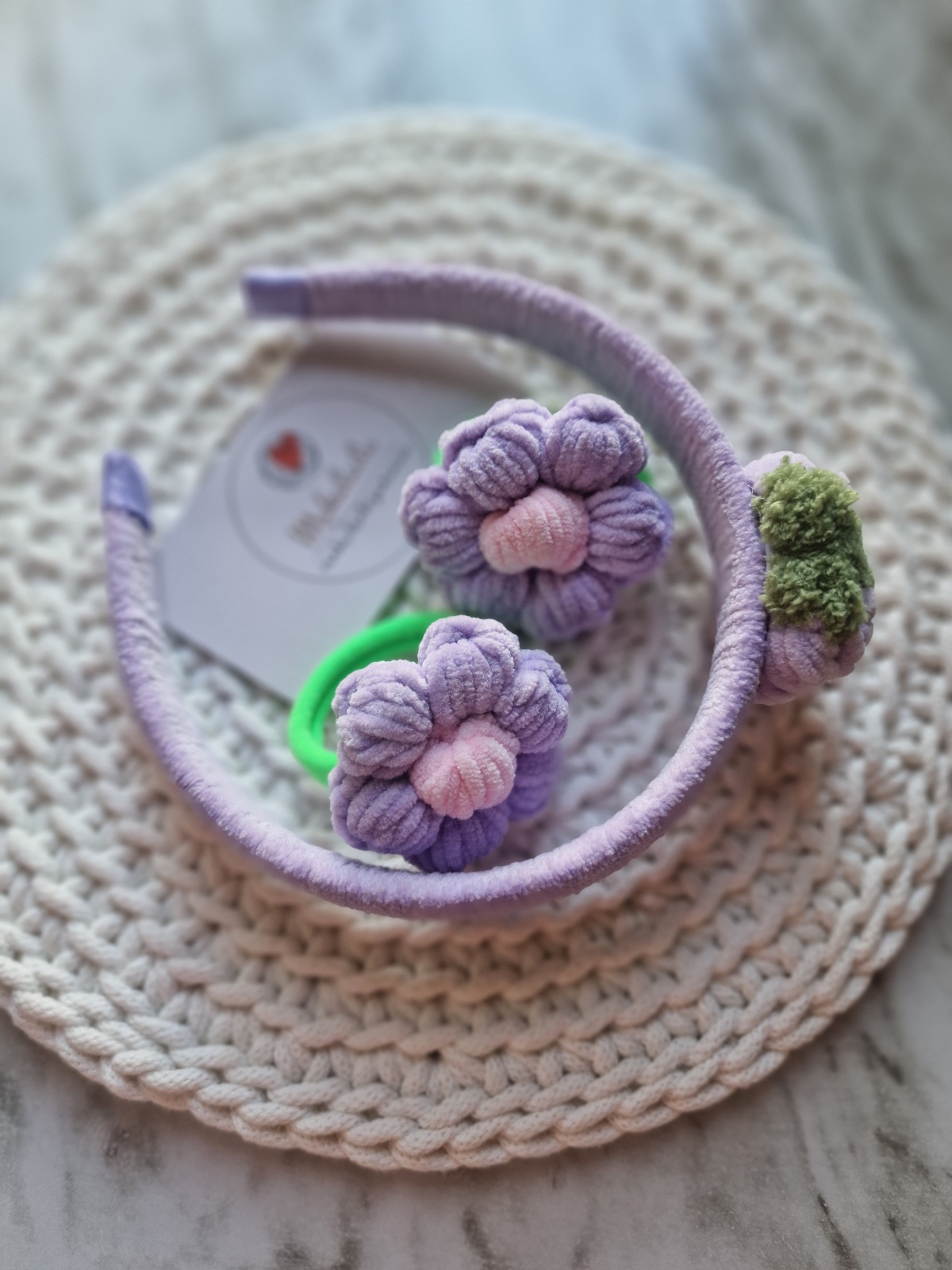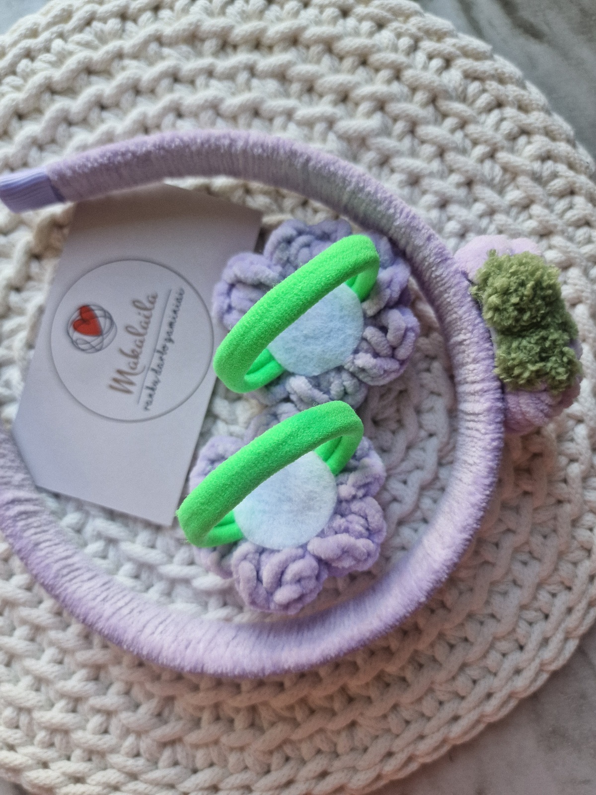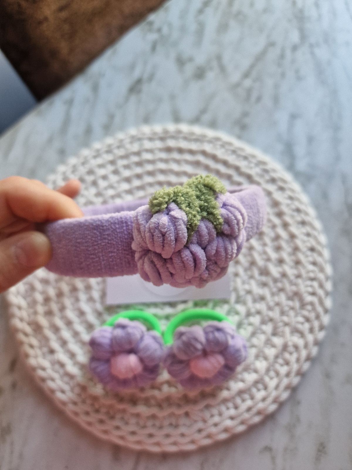 Suderintas aksesuarų rinkinys – ryškus, žaismingas ir išskirtinis! Rankų darbo lankelis su nerta braške ir 2vnt. plaukų gumelių – visa tai, ko reikia mažajai damutei ypatingai dienai ar kasdieniam pasipuošimui!