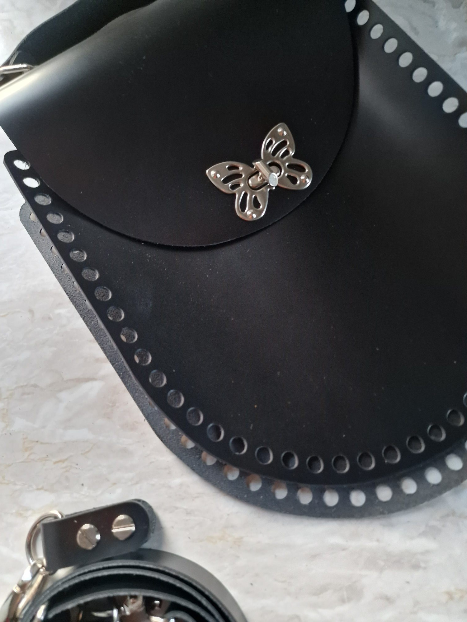 Rankų darbo odinis viršelis su skylutėmis aplink kraštus – idealus pasirinkimas nertoms rankinėms.