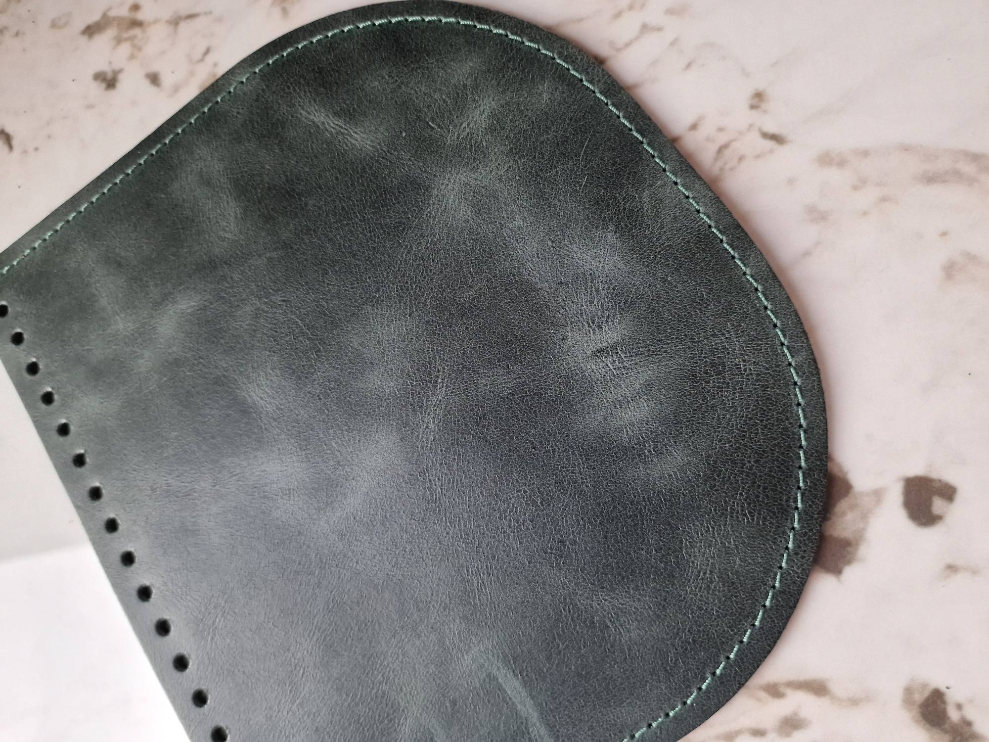 Komplekte – užsegimo nugarėlė su prisiūtu odiniu apskritimu ir viršelis.