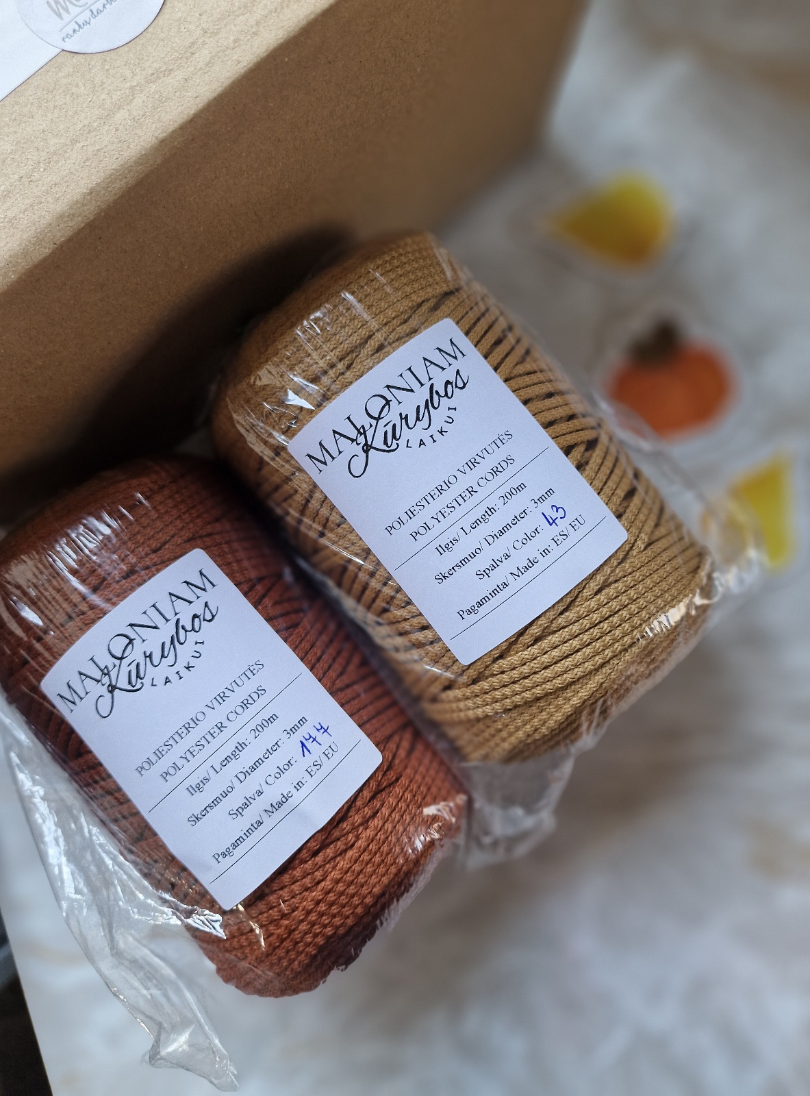 2 kruopščiai parinktas 3mm rudens atspalvių virvutes(po 200metrų ritinėlyje);