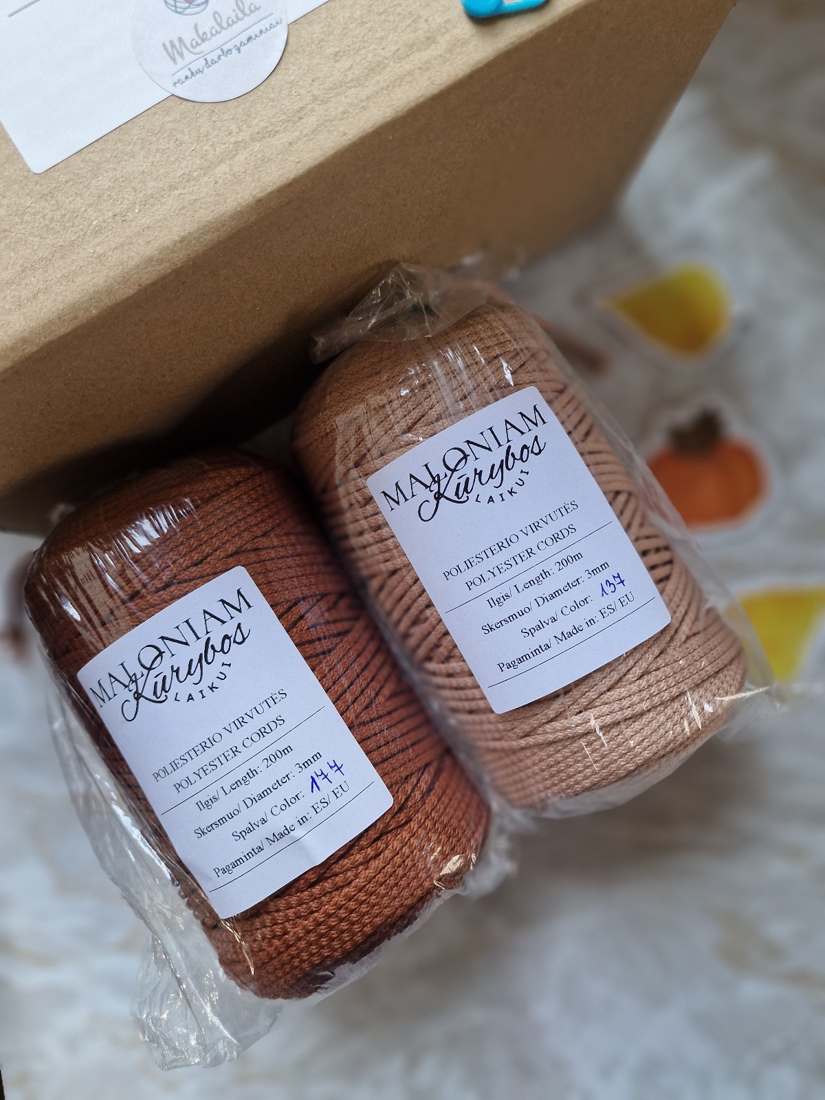 2 kruopščiai parinktas 3mm rudens atspalvių virvutes(po 200metrų ritinėlyje);